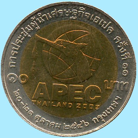 Referencia: 1841 - VS776 Año: 2003/2546 Valor: 10 Bahts Cant: 1 Metal: Bimetálica Peso: 8.44 gr. Diametro: 26.17 mm. Tirada: 3,000,000 Conservacion: SC |