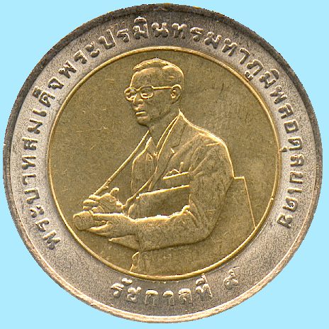 Referencia: 1155 - VS456;Y227 Año: 1997/2540 Valor: 10 Bahts Cant: 1 Metal: cobre-níquel; níquel-latón Peso: 8.44 gr. Diametro: 26.63 mm. Tirada: 9,310,000 Conservacion: MBC |