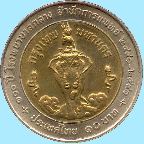 Referencia: 1836 - VS693 Año: 1996/2539 Valor: 10 Bahts Cant: 1 Metal: Bimetálica Peso: 8.44 gr. Diametro: 26.17 mm. Tirada: 5,000,000 Conservacion: SC |
