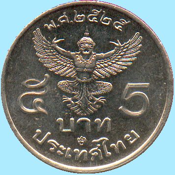 Referencia: 1797 - VS389;Y160 Año: 1982/2525 Valor: 5 Bahts Cant: 1 Metal: Niquel Peso: 12.00 gr. Diametro: 30.12 mm. Tirada: 500,000 Conservacion: EBC |