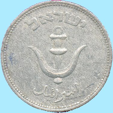 Referencia: 2684 - KM11 Año: 1949/5709 Valor: 10 Prutot Cant: 1 Metal: Bronce Diametro: 27.30 mm. Tirada: 7,500,000 Conservacion: RC |