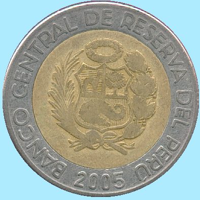 Referencia: 2931 - KM313 Año: 2005 Valor: 2 Nuevos Soles Cant: 1 Metal: Bimetálica Peso: 5.62 gr. Diametro: 22.23 mm. Conservacion: RC |