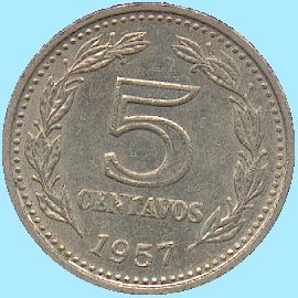 Referencia: 1326 - KM53 Año: 1957 Valor: 5 Centavos Moneda Nacional Cant: 1 Metal: Acero Recubierto de Cupro-Nickel Diametro: 17.13 mm. Tirada: 26,930,300 Conservacion: MBC+ |