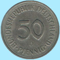 Referencia: 263 - KM109.2 Año: 1972-1983 Valor: 50 Pfennig Cant: 5 Metal: Cupro-Niquel Peso: 3.50 gr. Diametro: 19.97 mm. Tirada: 23,250,000 Conservacion: EBC |