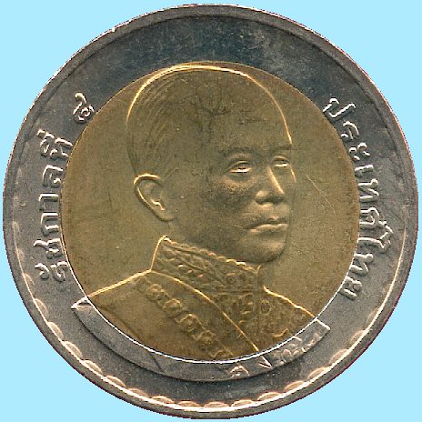 Referencia: 1855 - VS825 Año: 2005/2548 Valor: 10 Bahts Cant: 1 Metal: Bimetálica Peso: 8.44 gr. Diametro: 26.06 mm. Tirada: 3,000,000 Conservacion: SC |