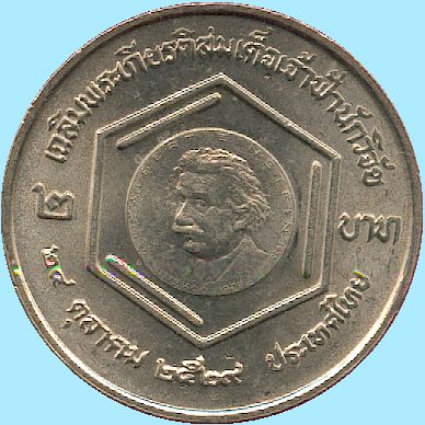 Referencia: 1880 - VS464 Año: 1987/2530 Valor: 2 Bahts Cant: 1 Metal: Niquel Diametro: 22.56 mm. Tirada: 3,000,000 Conservacion: MBC |