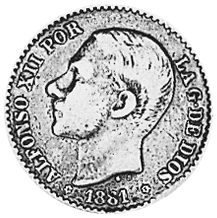 Referencia: 1543 - HG38 Año: 1881/8-1 Valor: 50 Centimos Cant: 1 Metal: Plata Peso: 2.50 gr. Diametro: 18.36 mm. Tirada: 5,647,286 Conservacion: EBC ***A Conseguir por no más de:: 33,00343 € |